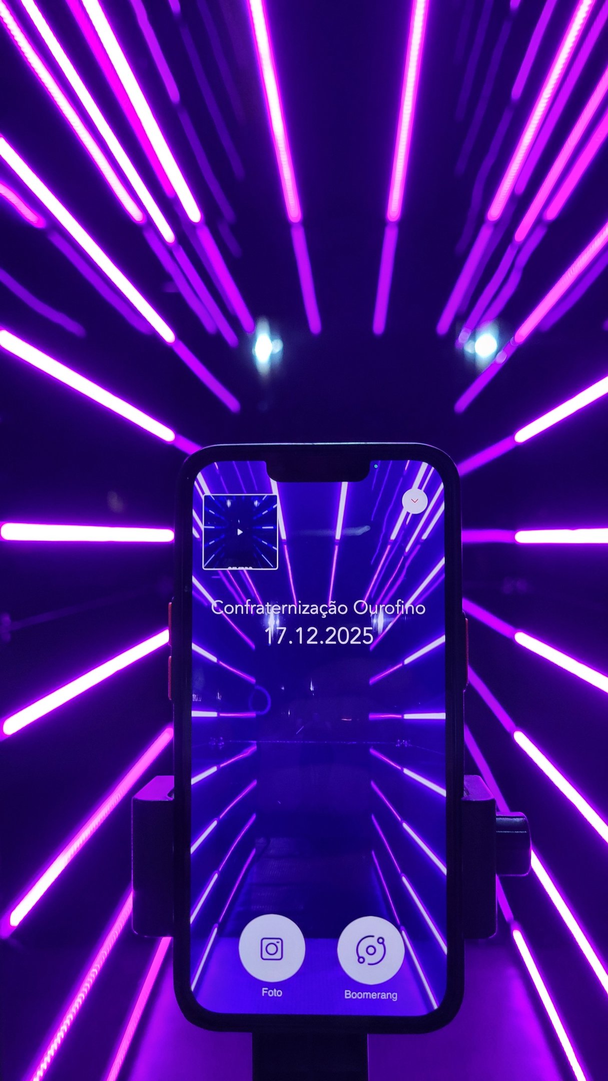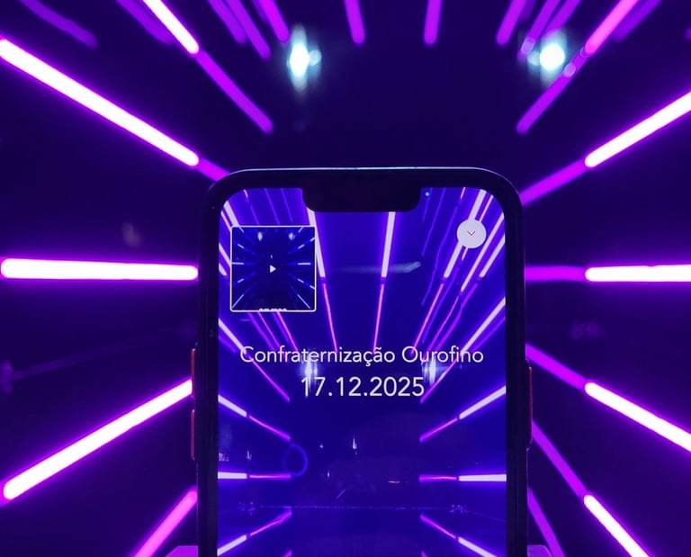 O Túnel de LED Black cria uma experiência visual moderna dentro do evento, registrando fotos, vídeos e GIFs digitais em um ambiente iluminado por painéis de LED.